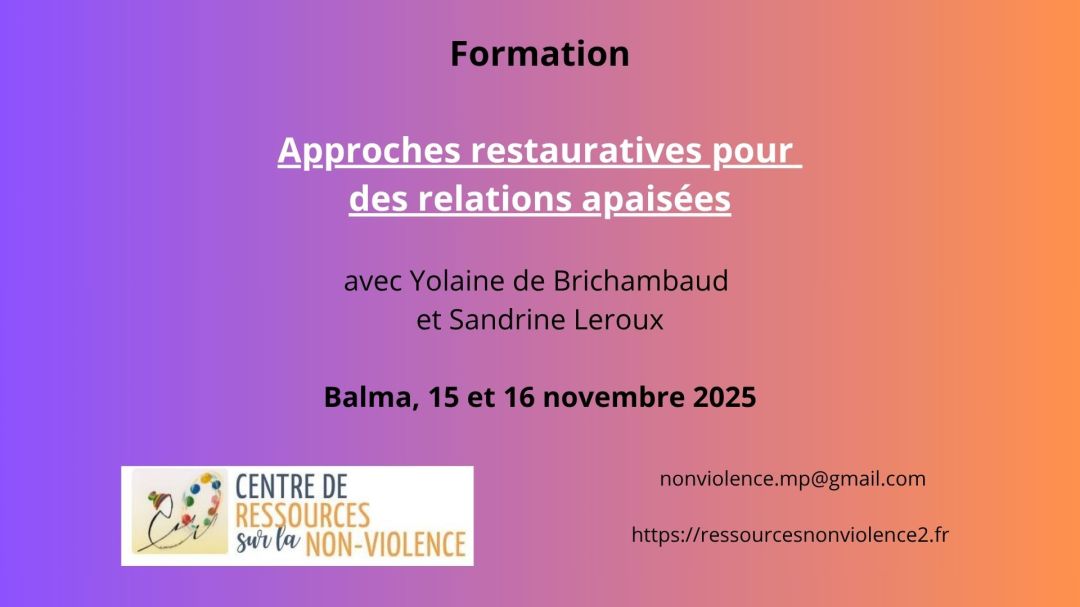 Balma, 16 et 17 novembre 2025 Nous constatons dans notre sphère personnelle ou professionnelle que la manière de résoudre les conflits n’est pas adaptée car elle ne permet pas d’en limiter la survenance et de résoudre la problématique relationnelle. A l’école, au collège ou dans les fratries, les conflits sont courants, parfois violents et cette … Lire la suite de Formation – Approches restauratives pour des relations apaisées