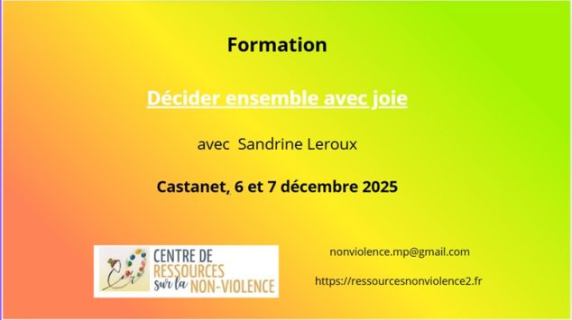 Castanet, 6 et 7 décembre 2025 Nous constatons parfois dans notre sphère personnelle ou professionnelle que les décisions se prennent difficilement, que le temps passé en discussions et échanges est peu productif ou que les décisions prises sont peu ou mal suivies par manque d’adhésion, de compréhension, d’élan… Cette formation vous permettra de mettre en … Lire la suite de Formation – Décider ensemble dans la joie
